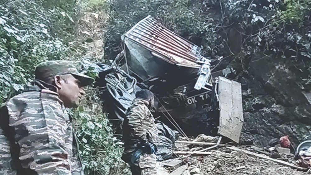 “At 1155 hours, after four hours of intensive search and rope descent, the truck was spotted around 200 metres below the road near KM 40 in a re-entrant, inaccessible and not visible from helicopters or the road due to dense tree cover and thick foliage,” he added.