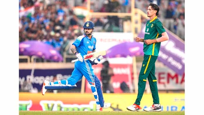 On a flat JSCA surface, Kohli (135 off 120 balls) controlled the tempo of the innings from the moment he walked in, anchoring India’s imposing 349 for eight with an effort that blended classical stroke-play with calculated acceleration.