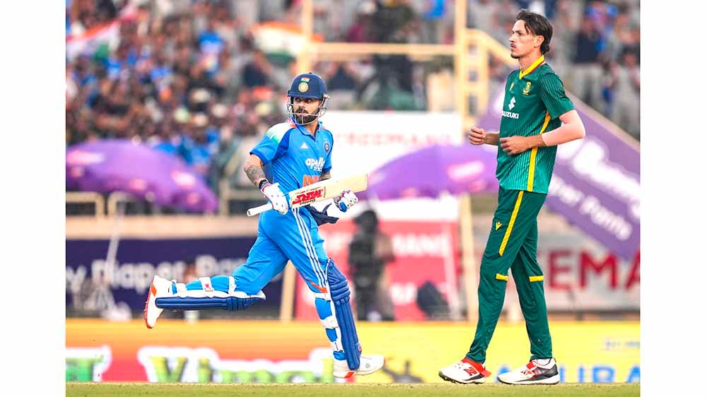 Earlier Kohli’s commanding knock came off 120 balls with seven sixes and 11 fours. His 136-run stand with Rohit Sharma (57 off 51) for the second wicket set up India’s big total on a JSCA shirtfront.