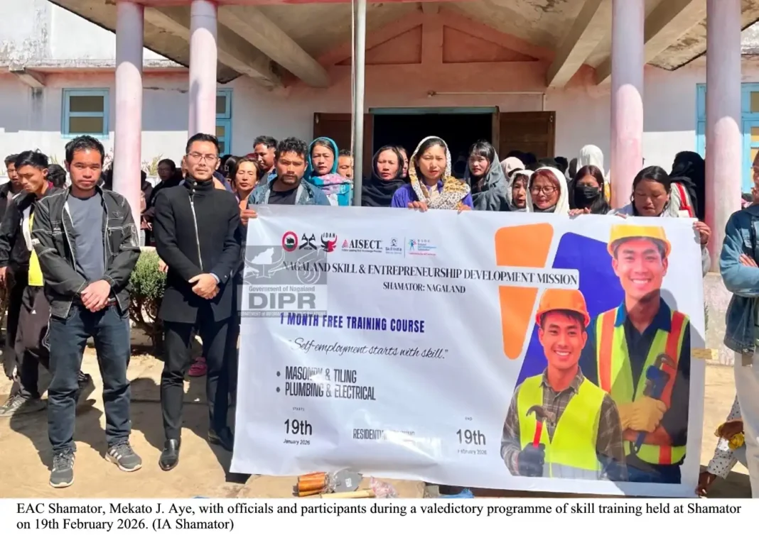 Speaking at the valedictory programme, EAC Shamator, Mekato J. Aye, congratulated the participants who had undergone training in masonry, plumbing, tiling and electrical trades. He urged them to build strong professional networks, understand the circulation of money within the local economy, and contribute towards strengthening the district economy and, ultimately, the economy of Nagaland.