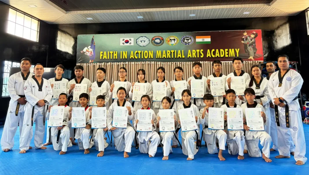 The Faith in Action Martial Arts Academy organized a Taekwondo Black Belt Awarding Ceremony on February 28 at Immanuel Hall, Y. Zhimo Colony, Dimapur, where 21 Taekwondo players successfully earned their prestigious Kukkiwon Black Belt (Dan) certification.