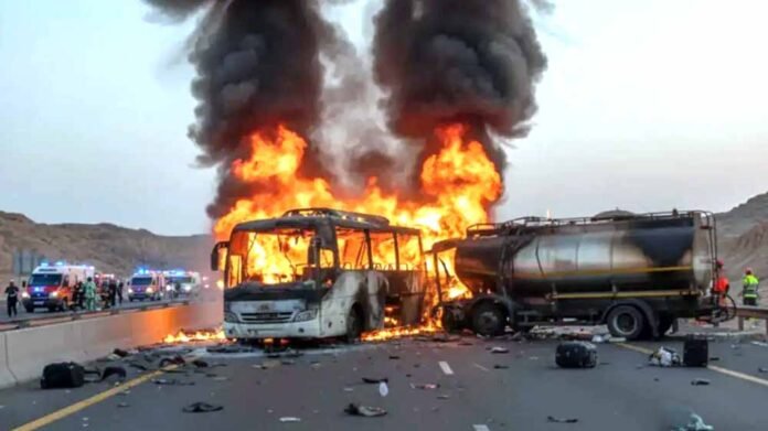 Forty-two Indian Umrah pilgrims from Telangana were among 44 people killed in a collision involving their bus and a fuel tanker near Madina in Saudi Arabia in the wee hours of Monday, people familiar with the matter said.