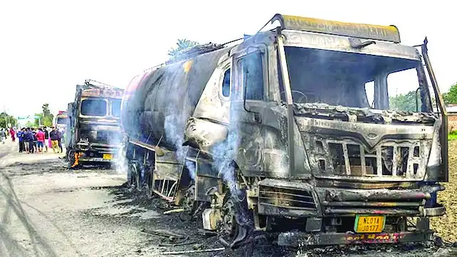 The incident sparked widespread protests in the area, with demonstrators blocking the Imphal-Tidim Road and setting several trucks ablaze.