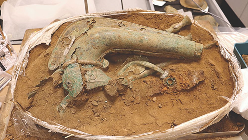Archaeologists find near-complete Iron Age battle trumpet