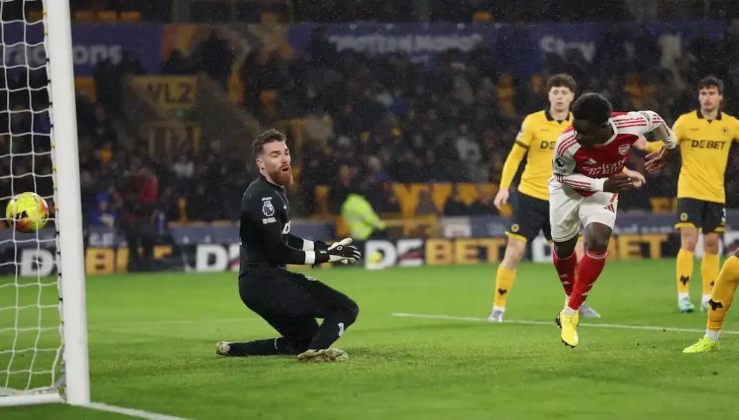 The visitors took only four minutes to grab the lead as Saka ended his longest run without a goal for the club. Declan Rice’s brilliant lofted pass into the six-yard box set up Saka to stoop to head into the net from close range.