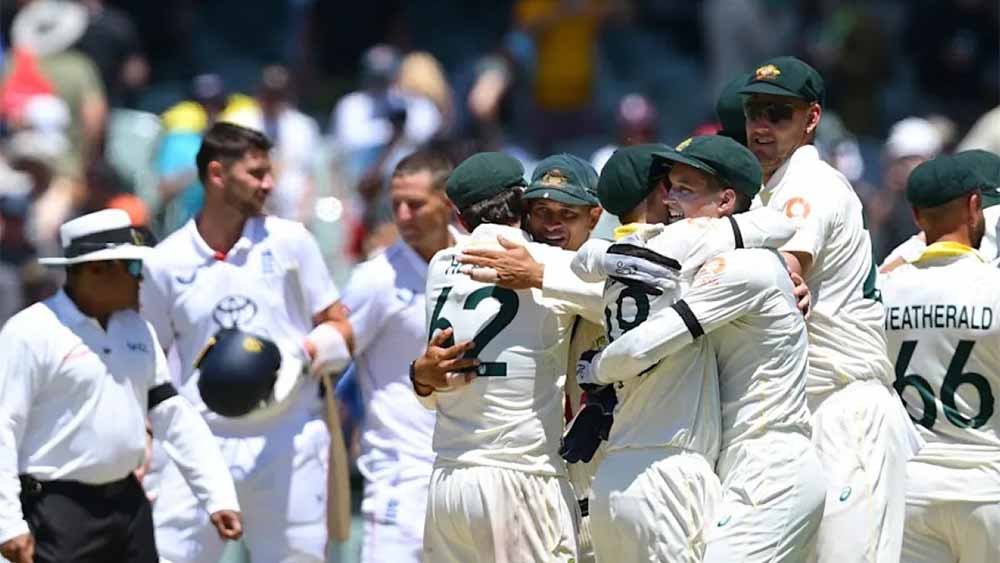 Mitchell Starc, skipper Pat Cummins, and Nathan Lyon shared nine wickets as Australia stormed to an 82-run victory in the Adelaide Test, retaining the Ashes series after winning their third consecutive Test this series.