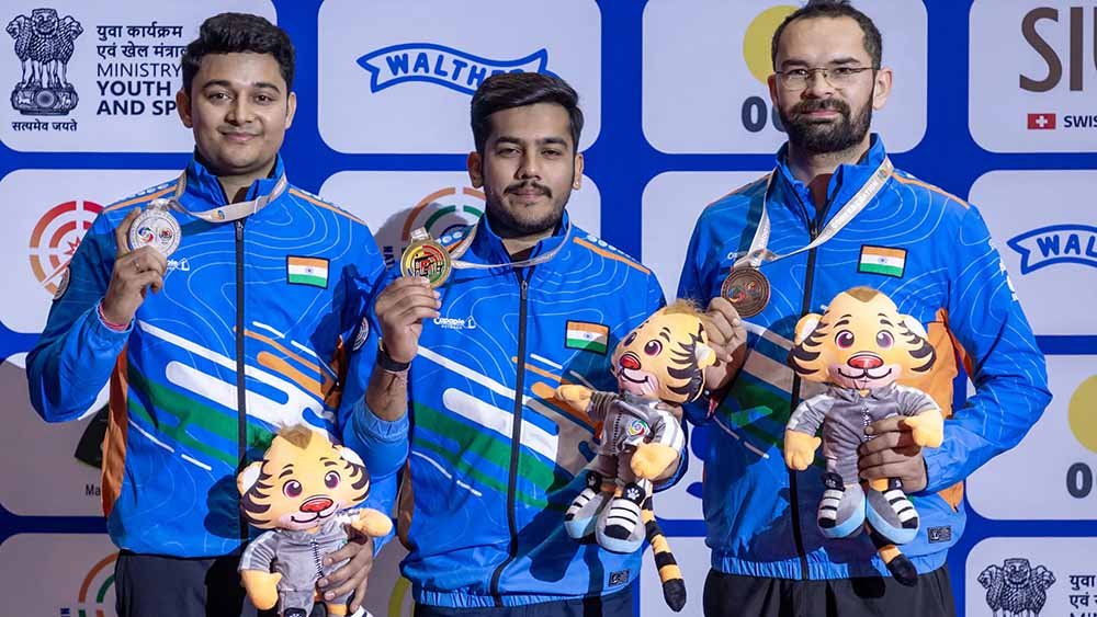 Nikhil Tanwar, who was also shooting for ranking points, scored 587-29x. The trio of Aishwary, Niraj and Akhil also won the team gold, with Japan and Kazakhstan winning the silver and bronze medals, respectively.