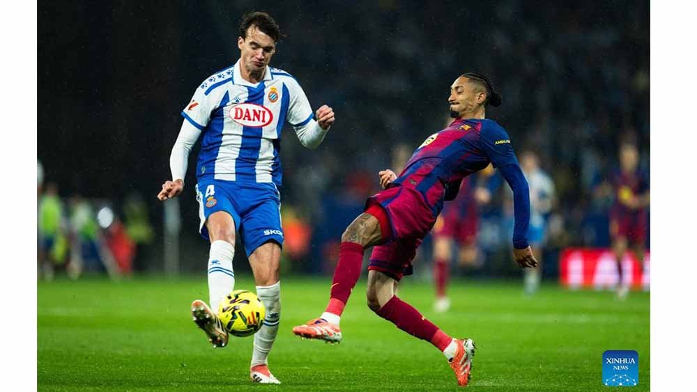 La Liga leader FC Barcelona rode its luck before two late goals from Dani Olmo and Robert Lewandowski assured a 2-0 win away to local rivals Espanyol.
