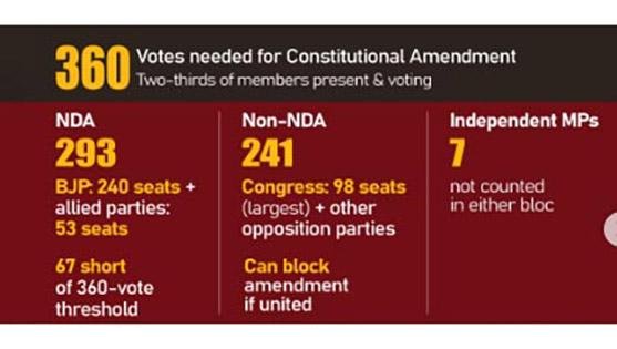 The constitutional amendment Bills require a special majority of two-thirds of those present and voting to be passed. Any walkout or abstention by the Opposition could lower the effective majority threshold. With an effective strength of 537 in the Lok Sabha, the two-thirds mark comes to 360. The ruling NDA, with 293 members, falls short by 67 seats. In the Rajya Sabha, the magic number is 163, while the NDA’s strength of 142-plus members leaves it 21 seats short of the majority mark. Adding to the government’s challenges, parties such as Naveen Patnaik’s Biju Janata Dal and K. Chandrasekhar Rao’s Bharat Rashtra Samithi, which had extended issue-based support earlier, have now hardened their stance on delimitation. However, the government has maintained that it has the numbers. “I am not going into the politics of which party is saying what. No party is opposing the women’s reservation in Parliament and assemblies. In principle and in spirit, everybody is together,” said Union Minister Kiren Rijiju.