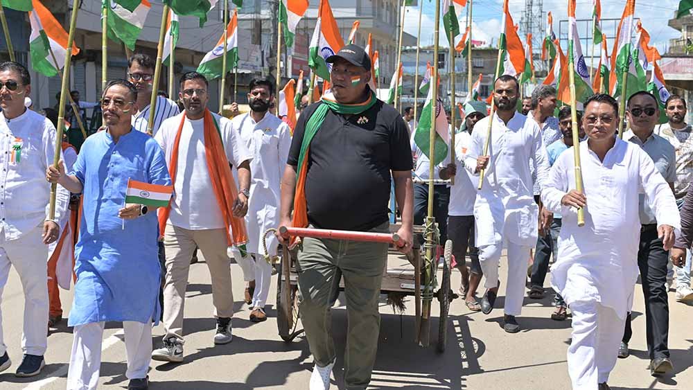 Bringing the “Har Ghar Tiranga” campaign to a spirited close, the Bharatiya Janata Party (BJP) Nagaland, led by State President Benjamin Yepthomi, organised a Hand Cart Tiranga Yatra from DDSC to Thakurbari Ground via Blue Hill Road in Dimapur. About 100 hand carts participated in the colourful procession.