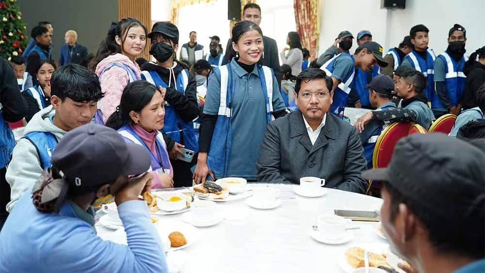 Meghalaya Chief Minister Conrad K Sangma on Friday shared breakfast with sanitation workers in Shillong.