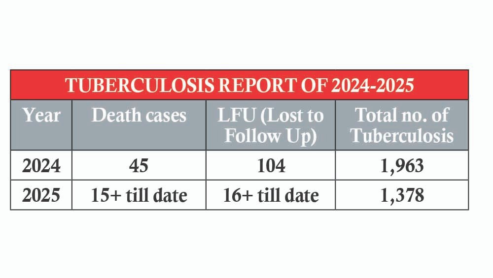Dimapur district continues to top the list of TB cases in the state with an estimated 1,963 patients in 2024 where a total of 45 were registered as death cases and 104 as Lost to Follow-Up (LFU).
