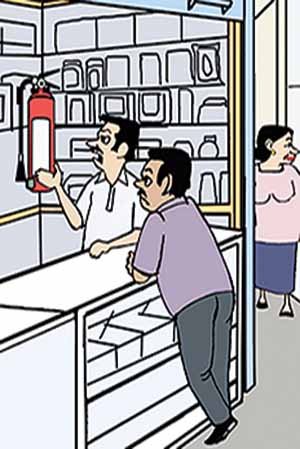 “Fire extinguisher. How I wish it could extinguish daily tax demands.”