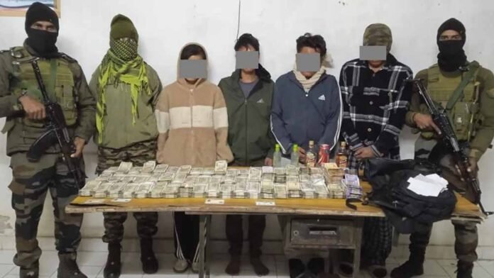 Security forces in Manipur’s Kamjong district apprehended four individuals, including a woman, with unaccounted cash amounting to Rs. 57,77,700 during a routine check at Phaikoh Outpost (MVCP) under Chassad police station on November 28.