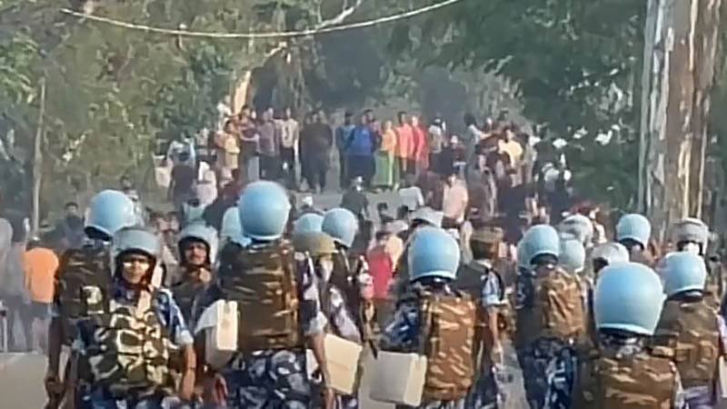Police said the mob obstructed the vehicles of the security team, damaged and set fire to two of them, and attempted to detain personnel. Additional forces were mobilised, and the crowd was dispersed using “minimum necessary force,” including tear smoke. Injured civilians were provided medical assistance.