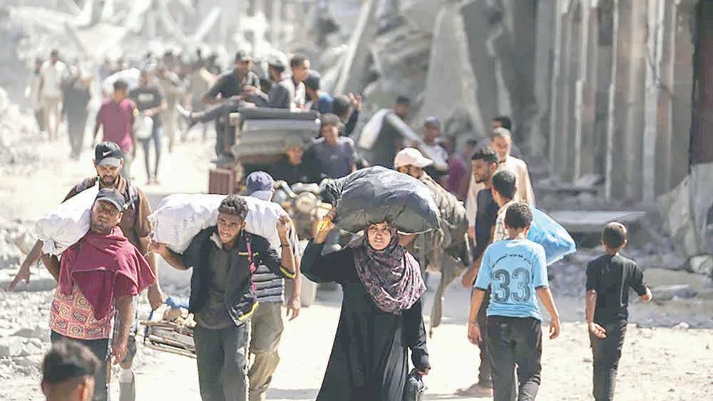 A massive column of displaced Gazans filed north through the dust towards Gaza City, the enclave’s biggest urban area, which had been under attack just days ago in one of Israel’s biggest offensives of the war.