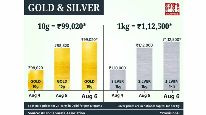 “This tariff-related uncertainty added a risk premium on precious metals,” Gandhi said. As per Sarafa Association, silver prices climbed Rs 500 to Rs 1,12,500 per kilogram (inclusive of all taxes) on Wednesday. The white metal had ended at Rs 1,12,000 per kg in the previous market close. Traders will monitor speeches by Federal Reserve members later in the day, which will provide further guidance on the trajectory of the bullion prices, he added.