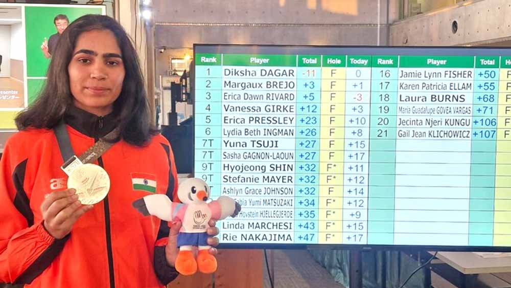 Diksha produced rounds of 68, 65, 72 at the par-72 Wakasu Golf Links to top the podium by a whopping 14-stroke margin in women’s individual strokeplay competition.