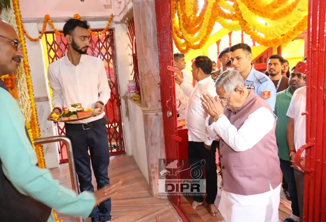 The governor of Nagaland, Nand Kishore Yadav, visited Sitla Mata Mandir, Hanuman Mandir and Shree Shree Siddhi Vinayak Ganesh Mandir on March 19, 2026 as part of his official tour, where he offered prayers and sought blessings.