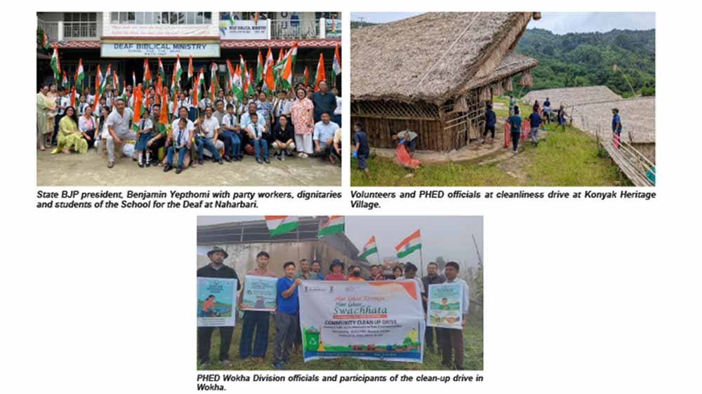 WOKHA: In Wokha, PHED Wokha Division conducted a community clean-up drive at Ganga Post Main Reservoir Compound. The event began with the hoisting of the National Flag and installation of signage promoting cleanliness and water conservation. District Chemist Er. Aremo Y. Ovung conducted water quality testing, while District Coordinator S. Aochuba Longchar spoke on plastic segregation and waste management practices. The campaign continues until August 15.