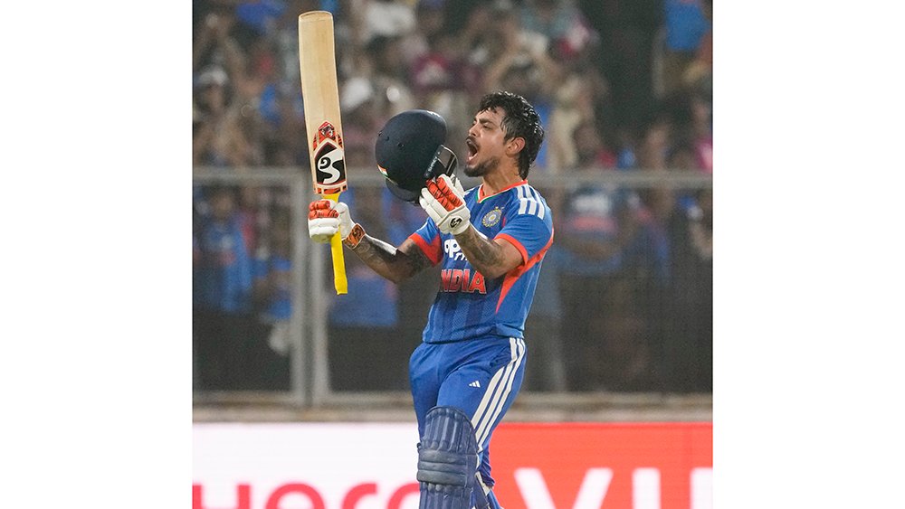 The Jharkhand man soon reached the cherished three-figure mark in 42 balls — a six off Santner took him to 97 and the subsequent one carried him past the landmark, which he celebrated with gusto before melting into Hardik Pandya’s bear hug. Kishan’s second fifty came off just 14 balls.