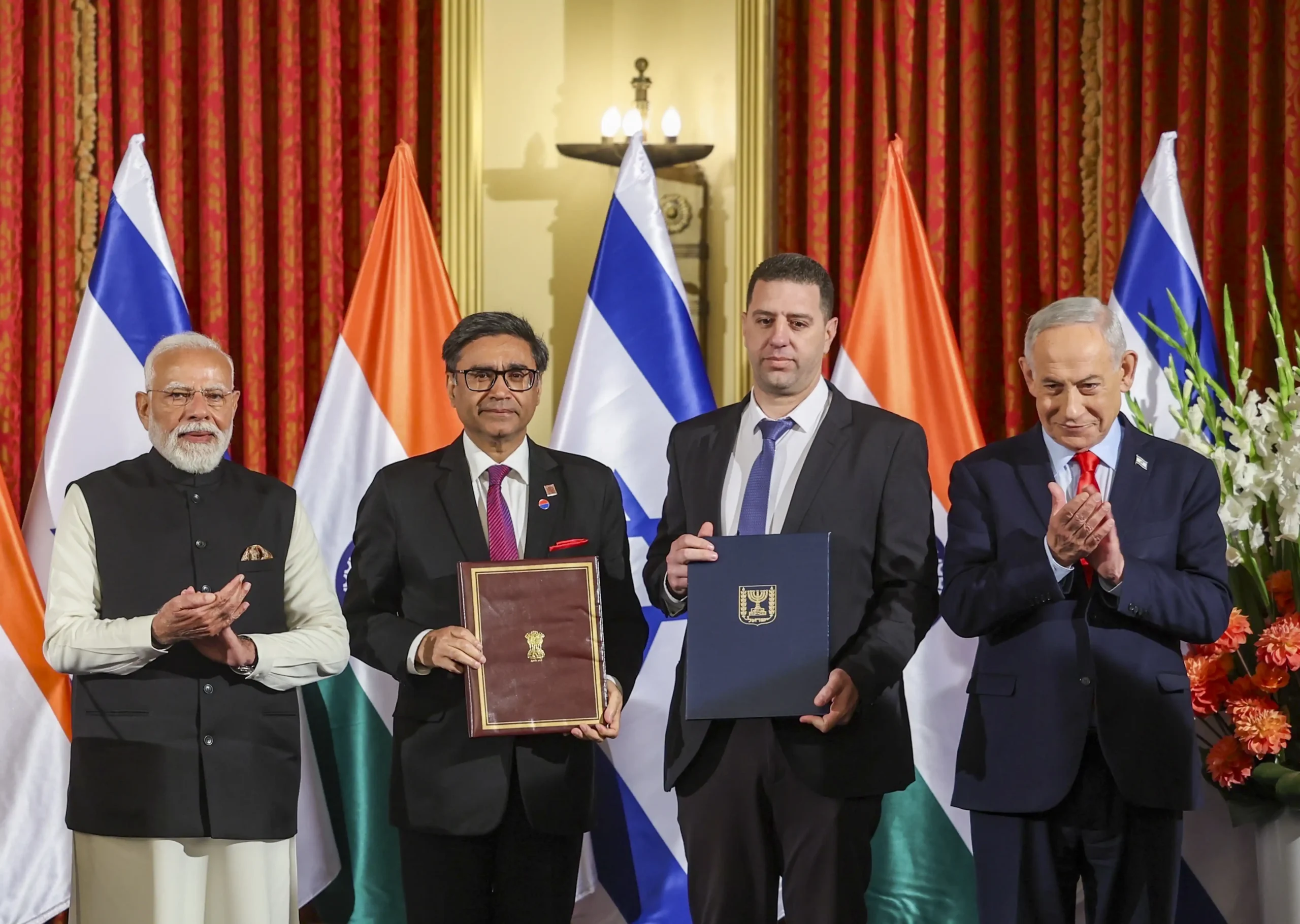 In his media statement after wide-ranging talks with Israeli Prime Minister Benjamin Netanyahu, Modi said India’s security interests are directly linked to peace and stability in West Asia and reiterated New Delhi’s consistent call for a peaceful resolution to the Gaza conflict.