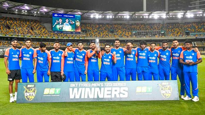 India raced to 52 for no loss in 4.5 overs before rain forced their fifth and final T20I against Australia to be washed out at The Gabba in Brisbane on Saturday. With persistent rain and lightning forcing the game’s abandonment, India clinched the five-match series 2-1.