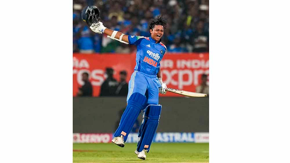 But an ill-timed sweep off left-arm spinner Keshav Maharaj cut short his stay. But that didn’t deter Jaiswal, who, accompanied by Kohli, kept India’s innings moving. The 23-year-old reached the coveted three-figure mark in 111 balls with a single off pacer Corbin Bosch and immediately tore his helmet away to slip into an energetic celebration a combination of sprint, jump, roar and punch in the air. Jaiswal and a typically assertive Kohli added 156 runs for the second wicket as India calmly went past the target to whip some frenzy among a nearly 27000-strong crowd.