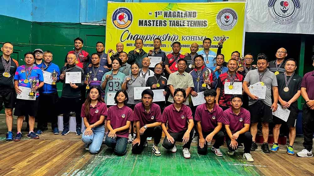 The 1st Nagaland Masters Table Tennis Championship, organized under the aegis of the Nagaland Masters Table Tennis Association (NMTTA) and Nagaland Table Tennis Association (NTTA), concluded on September 6 in Kohima. The two-day event saw participation from seven districts and featured 44 veteran players competing across team and individual categories.