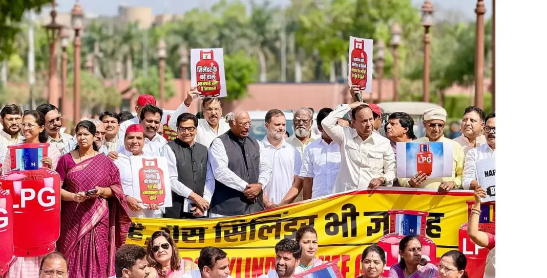 Opposition MPs on Friday held a protest in the Parliament Complex over the LPG crisis issue, and raised slogans demanding answers from Petroleum Minister Hardeep Puri and Prime Minister Narendra Modi.
