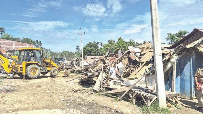 Contrary to government claims that the area was encroached, the demolished properties include houses under Pradhan Mantri Awas Yojana-Gramin (PMAY-G), water connection under Jal Jeevan Mission (JJM), government schools under Sarba Siksha Abhiyan (SSA) and electricity connections to almost every household, besides markets, mosques, madrassas and churches, according to locals.