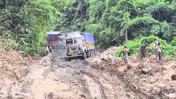 The Sairang-Kawnpui sector has been badly damaged by rains making trucks and other heavy vehicles unable to ply. Recently, a trucker association repaired the Sairang-Kawnpui stretch preventing oil tankers and trucks laden with essential items from plying on that portion.