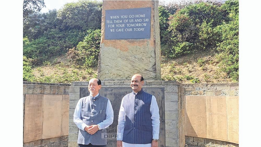 Special guest Lok Sabha Speaker Om Birla said battles fought on the Kohima grounds were to protect the nation. “Whenever we visit this site, we remember those valiant martyrs,” he said. Calling the Second World War historic and significant, he said the soldiers’ bravery continues to inspire. Reflecting on the Kohima Epitaph, he said, “To build a better tomorrow, we must be willing to give our today.” Birla also thanked chief minister Rio, noting the participation of Rio’s father in the war, and said India has always been a land of valour and sacrifice.