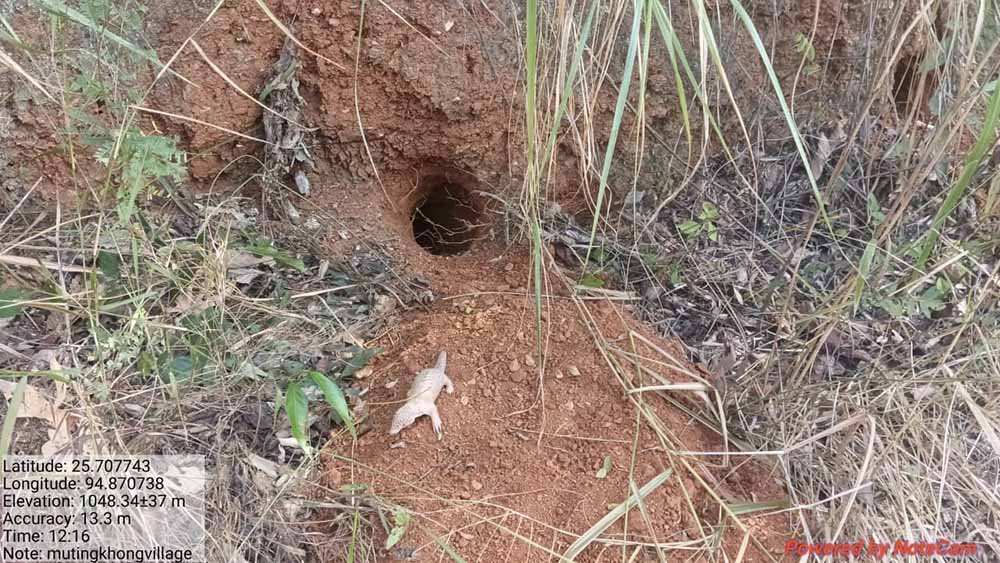According to N Apong, Chief Functionary of IBAPWO, the pangolin was accidentally caught by a villager, Khumong, who immediately informed him, instead of harming the animal. Acting promptly, team IBAPWO coordinated with the villager to ensure the safety of the pangolin. After assessing the situation, the team carefully rescued the animal and released it back into its natural burrow at the same location, where the mother pangolin was present.