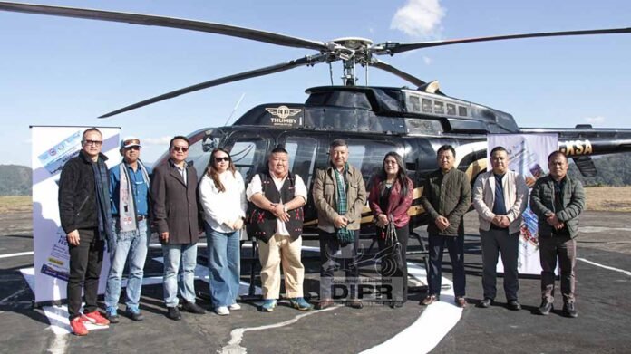 Minister for Tourism and Higher Education, Temjen Imna Along, flagged off the Aerial Experience Rides – Helicopter Service for the upcoming Hornbill Festival 2025 at Lerie Helipad, Kohima, on Tuesday.