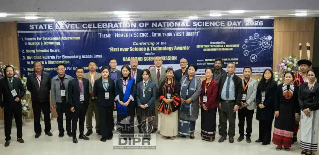 The State Level Celebration of National Science Day was held at the Capital Convention Centre, Kohima, under the theme “Women in Science: Catalysing Viksit Bharat.” The event, commemorating the discovery of the Raman Effect by Sir C.V. Raman, also witnessed the first-ever Nagaland Science & Technology Award Ceremony under the Nagaland Science Mission, an initiative launched in FY 2024–25 to promote scientific development in the state.