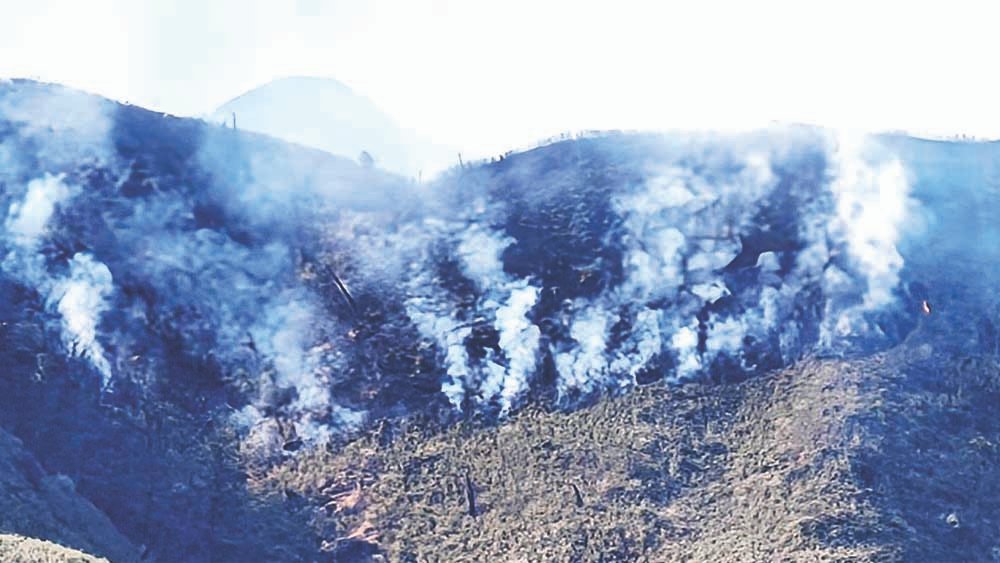 Imphal Correspondent adds: From the Manipur side, authorities have deployed teams of the National Disaster Response Force and State Disaster Response Force as the wildfire spread rapidly towards Mount Iso, the highest peak in Manipur.