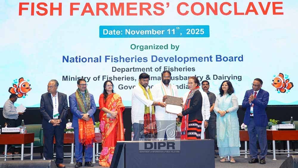 Icaisuile, a fish farmer from Peren district, was felicitated as a Progressive Fish Farmer during the Fish Farmers’ Conclave held on November 11 as part of the World Aquaculture India 2025 (WAI 2025) celebrations in Hyderabad.