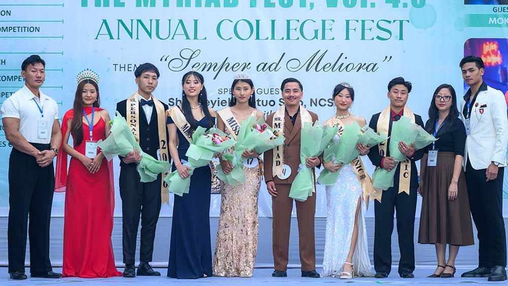 One of the highlights of the first day was the crowning of Miss and Mr Myriad. After three competitive rounds, Miss Lino T Aye and Mr Idohingbo Haining were crowned Miss and Mr Myriad respectively. Miss Mhonroni Kithan and Mr Merensashi Kichu were adjudged Miss Congeniality and Mr Personality, while the Best Ethnic Wear titles were awarded to Miss Wangshimongla Jamir and Mr Lamthio.