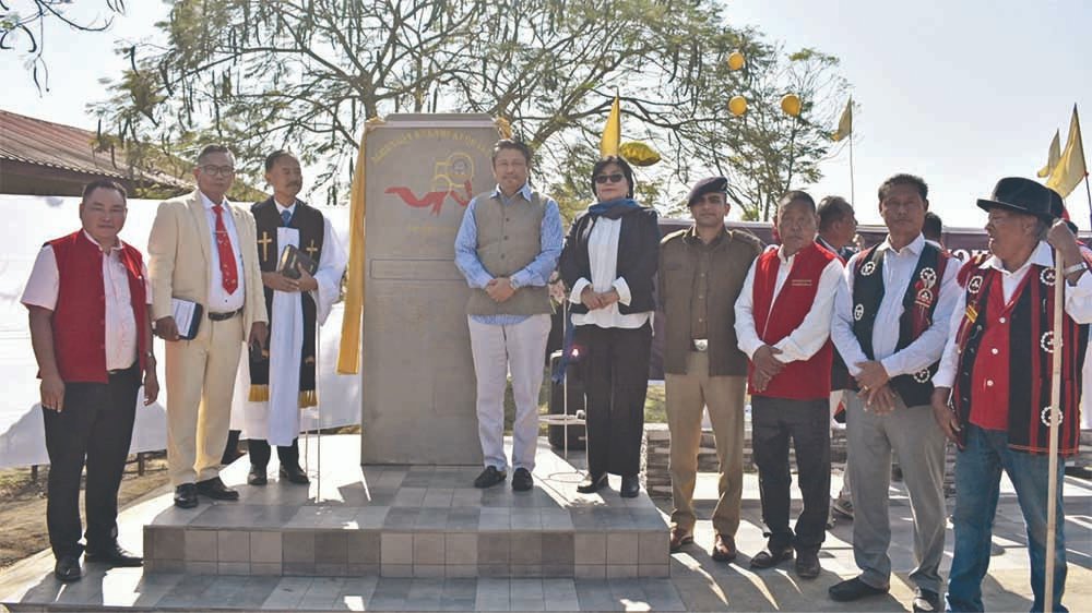 The jubilee celebration, held with much reverence and community spirit, was graced by Niuland deputy commissioner Sarah, who formally unveiled the Jubilee Souvenir. Rev. Dr. Phughoto Sema, ES WSBAK, offered the dedicatory prayer for the monolith, while Jacob unveiled the Golden Jubilee Monolith to mark the milestone event.