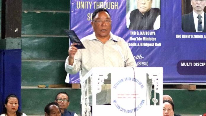 Minister for PWD, Roads and Bridges, Nagaland, G. Kaito Aye graced the inaugural edition of the Satakhami Union Dimapur (SUD) and Western Satoi Range Public Union (WSRPU) two-day sports exchange programme that commenced on Friday at the Multi-Disciplinary Sports Complex, Dimapur as the special guest. Held under the theme “Unity Through Sports”, the event is organized in collaboration with the Satakha Range Students Union and Satoi Range Students Union.