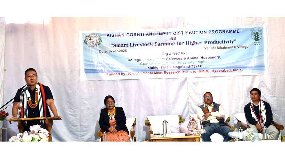 College of Veterinary Science and Animal Husbandry, Central Agricultural University (Imphal), Jalukie, Peren, Nagaland, organized a Kisan Goshti cum Input Distribution Programme on the theme “Smart Livestock Farming for Higher Productivity” at Mhainamtsi village, Peren, on February 7, 2026. The programme was funded by ICAR–National Meat Research Institute, Hyderabad.