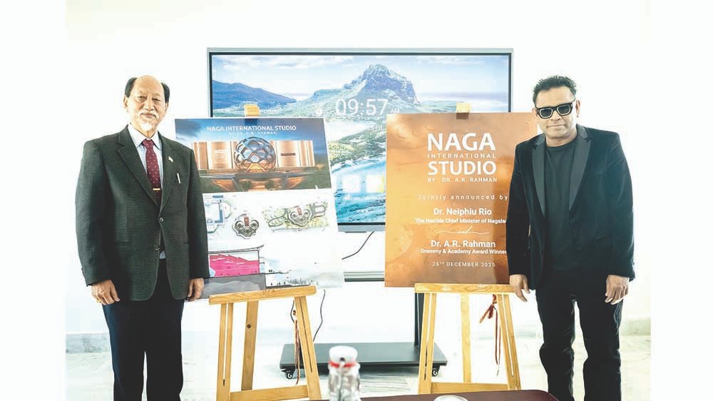 Nagaland chief minister Neiphiu Rio and music maestro A R Rahman on December 26 announced the setting up ‘Naga International Studio’, a world-class music and creative facility in Kohima, marking a significant step towards strengthening the state’s cultural and creative ecosystem.