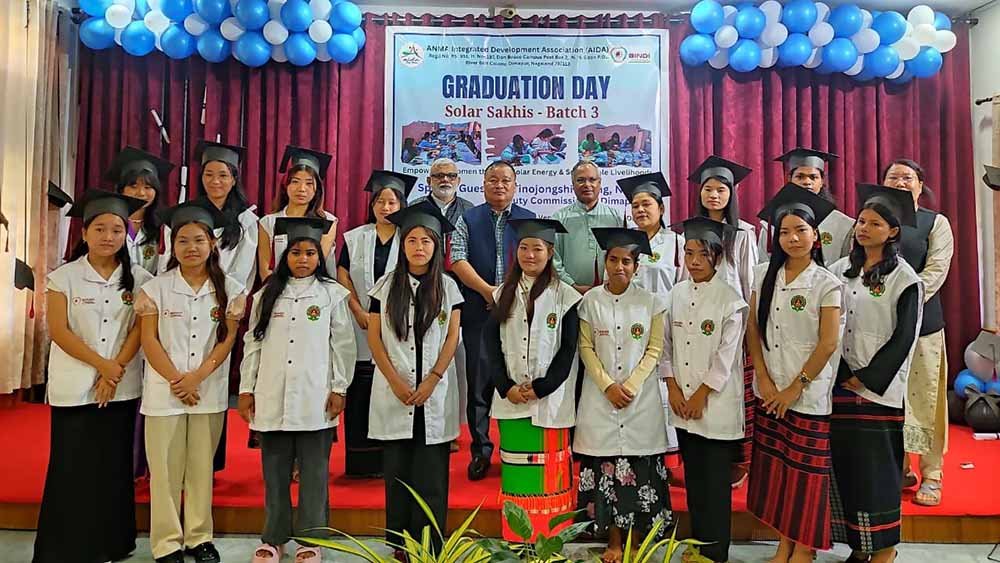 Sixteen women from Nagaland, Assam and Manipur successfully completed a three-month residential training in solar technology and sustainable livelihood skills under the Solar Sakhi Training Programme (Batch 3). The graduation ceremony was organised by ANMA Integrated Development Association (AIDA), Don Bosco, Dimapur, in partnership with BINDI International, at the AIDA campus on Tuesday.