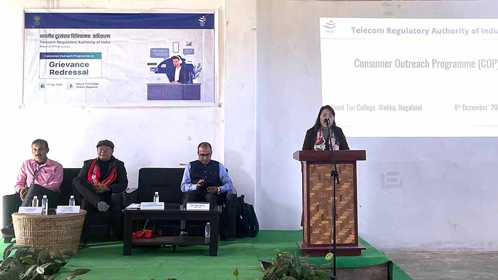 The Telecom Regulatory Authority of India (TRAI) Regional Office, Kolkata, conducted a Consumer Outreach Programme (COP) on December 4 at Mount Tiyi College, Wokha, aimed at enhancing public awareness on telecom consumer rights and services.