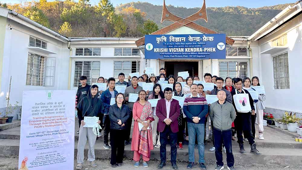 A press release by KVK Phek informed that in the first technical session, Scientist, ICAR–NRC on Mithun, Dr. Narendra VN, spoke on entrepreneurship opportunities in Poultry, while Scientist, ICAR–NRC on Mithun, Dr. Yallappa MS, highlighted importance of climate-resilient poultry farming.