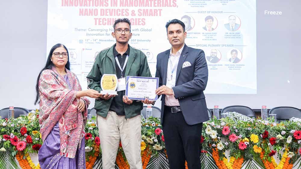 Shisak Sharma, a Doctoral Student in the Department of Chemistry at Nagaland University (Lumami), was recently awarded the prestigious “Overall Best Performance” title at the International Conference on Innovations in Nanomaterials, Nano Devices & Smart Technologies (INNOST NANO 2025), held from November 12-14. The conference, was jointly organized by SGT University, Gurugram, and Research Wheel Publishers.