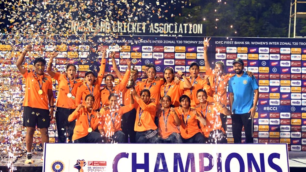 West Zone lifted the Senior Women’s Inter Zonal T20 Trophy 2025 with a 25-run win over North Zone in the final played at the Nagaland Cricket Stadium, Sovima on Thursday. A solid batting display backed by disciplined bowling secured the title for West Zone.