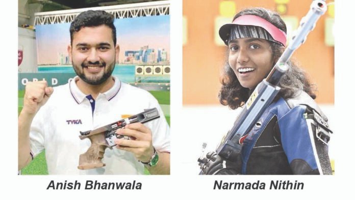 Former world champion and Olympian Anish Bhanwala won back-to-back trials in the 25m Rapid Fire Pistol (Men) event, while Tamil Nadu’s Narmada Nithin clinched the top spot in the Women’s 10m Air Rifle on Day Four of the National Selection Trials 3&4 for Group ‘A’ Rifle and Pistol shooters, currently underway at the Trishul Shooting Range, Maharana Pratap Sports College, here in Raipur.