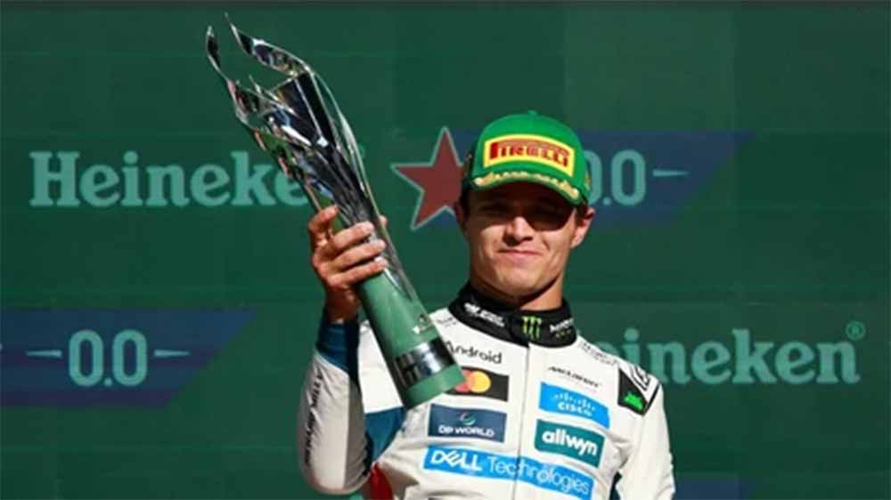 Starting from pole position after having dominated Saturday’s qualifying session, Norris headed off the threat from behind on lap 1 to settle into a commanding lead that he would keep to the flag, crossing the line some 30 seconds ahead of Ferrari’s Charles Leclerc.